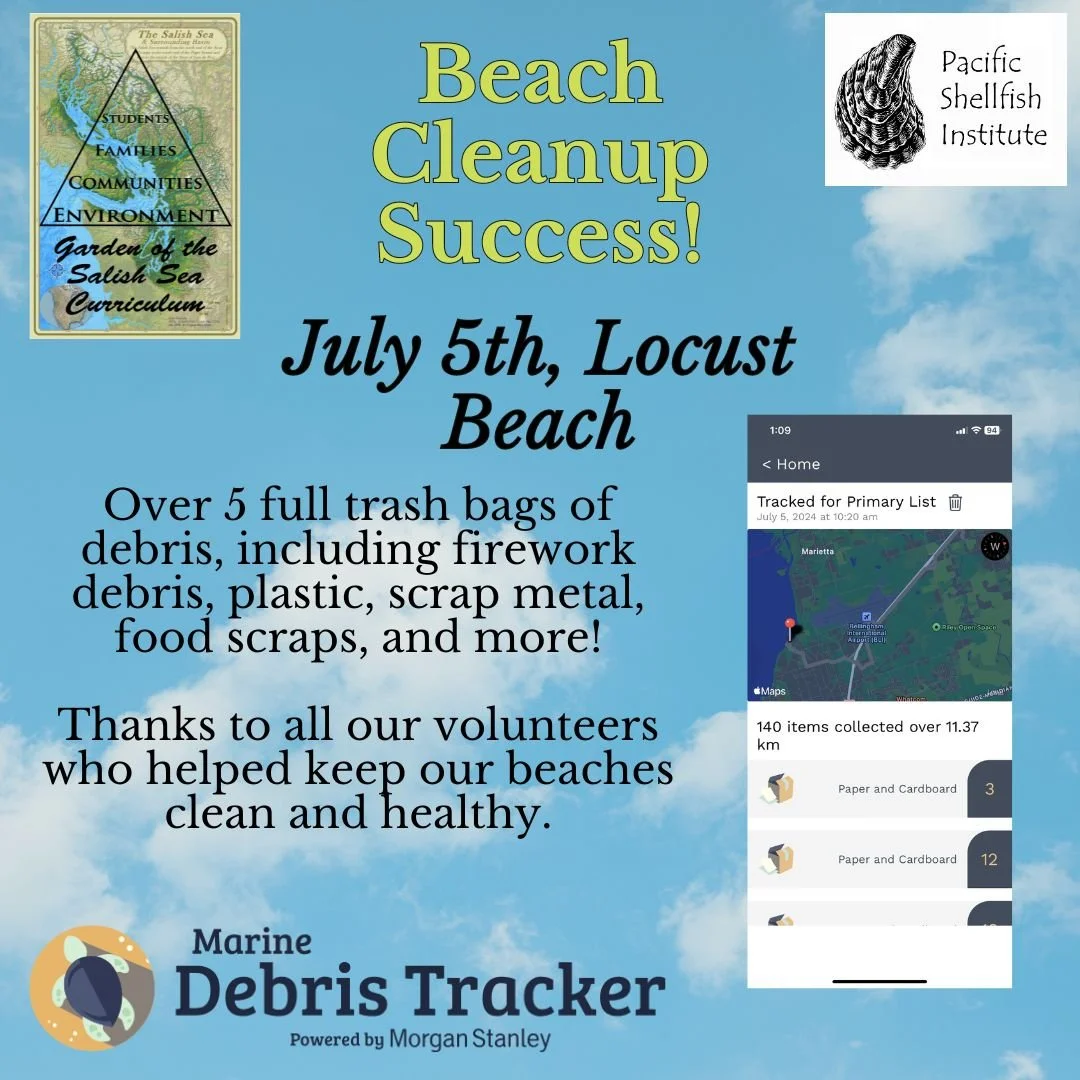 GSSC hosted a successful beach cleanup on July 5th at Locust Beach, just outside of Bellingham, WA. Over 5 full bags of debris were collected from the waterfront, helping to improve the health of our local beaches after the 4th of July holiday. Thanks, volunteers!